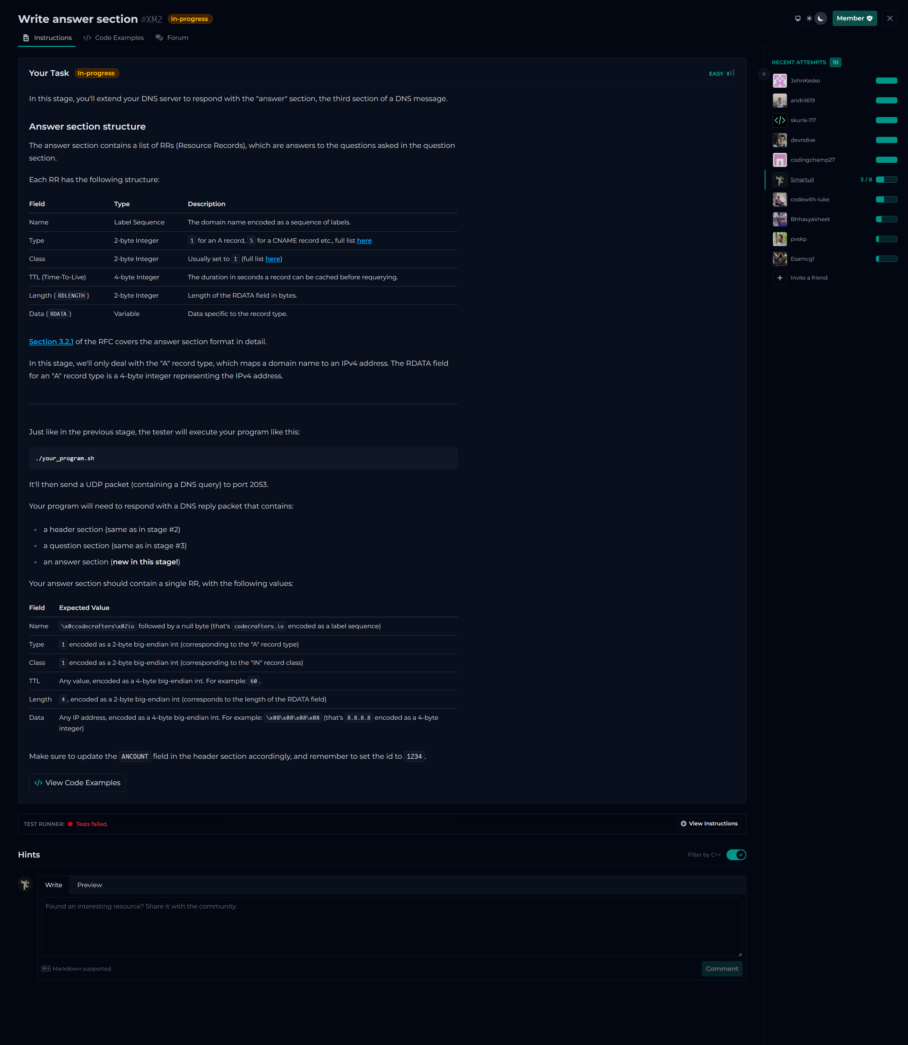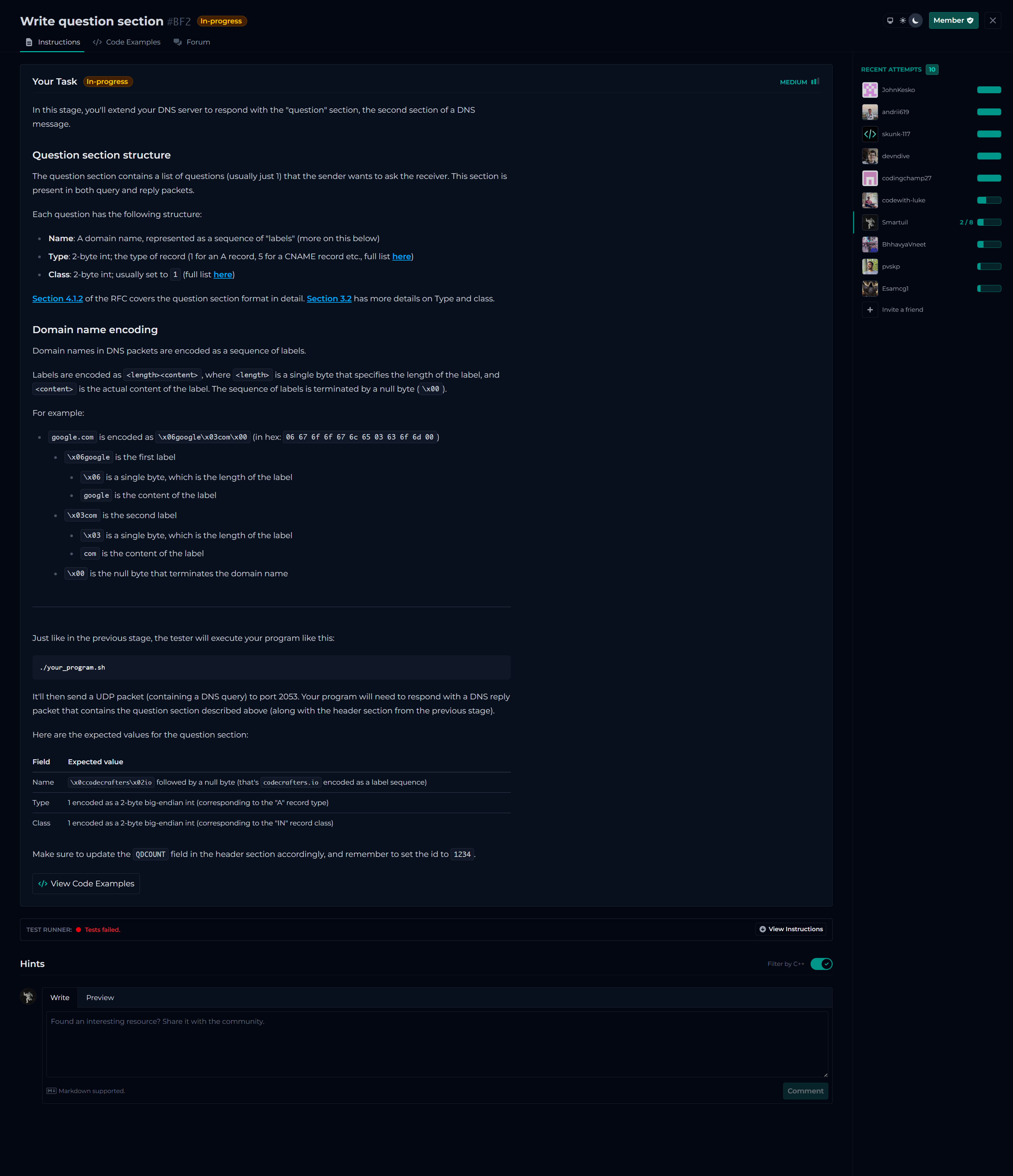 [tester::#UC8] Querying: ;codecrafters.io. IN A
