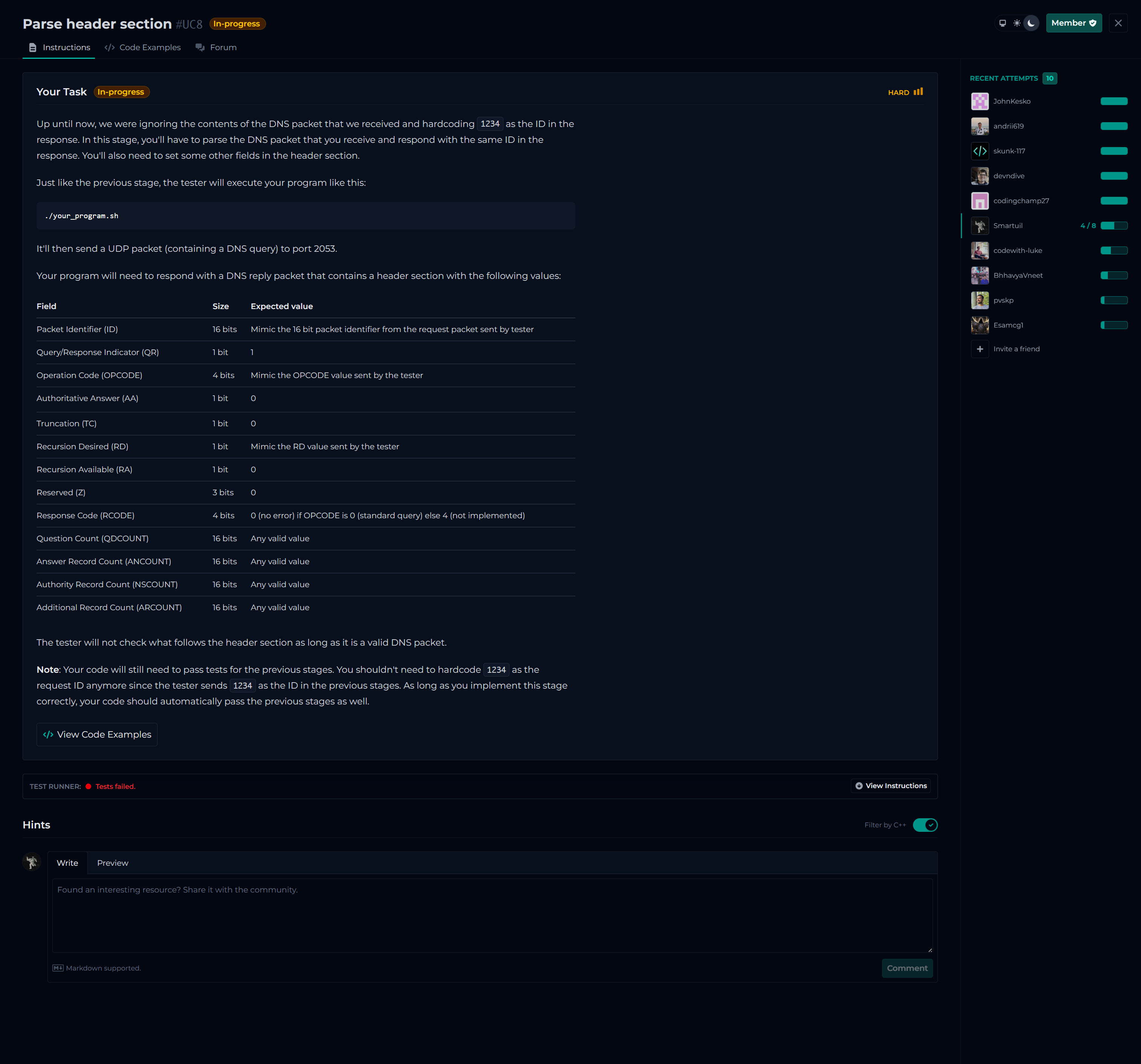 [tester::#TZ1] Running tests for Stage #TZ1 (Write header section)