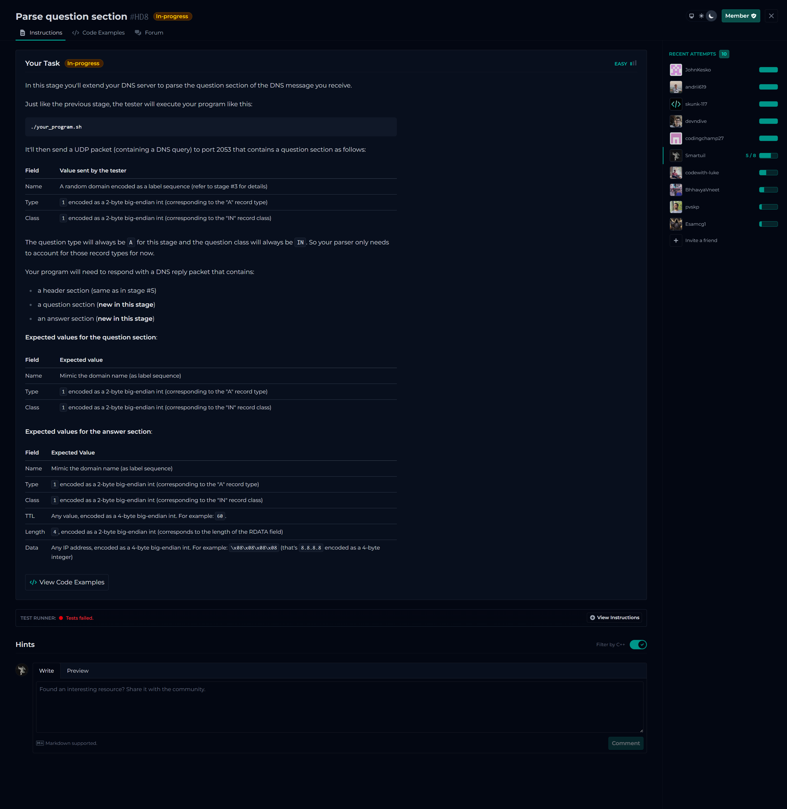 [tester::#HD8] Running tests for Stage #HD8 (Parse question section)